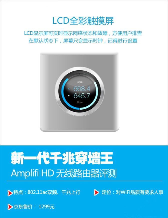 第一次看到AmpliFi无线路由器,小编彻底惊呆啦,还没有见到过这么漂亮无线路由器,不仅采用了内置天线,而且带了一块全彩触摸显示屏。